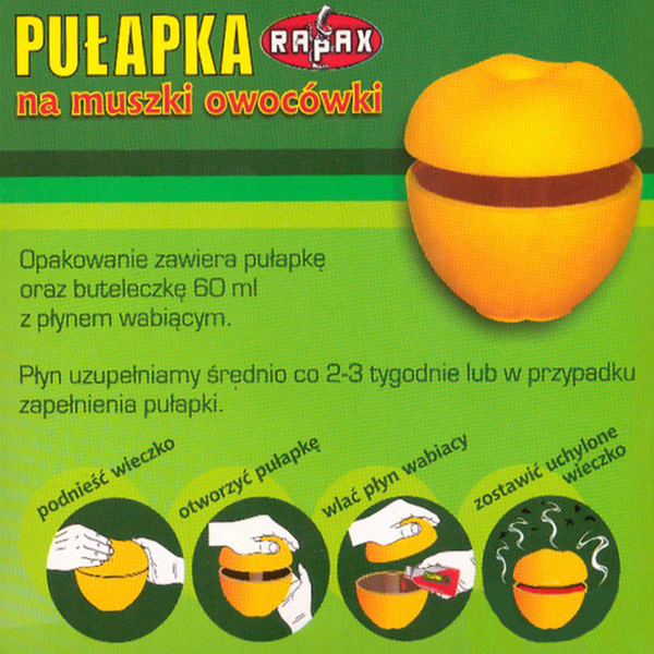 Безопасна для использования рядом с продуктами. Не токсична. Содержит натуральный аттрактант, который только привлекает мошек, но не травит.